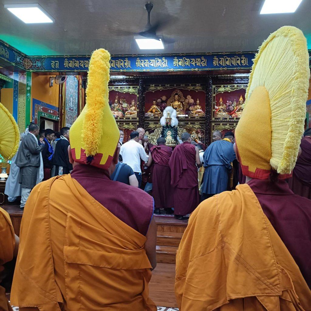 そのネチュン寺の図書館・博物館も見学し、私の大好きな般若経典の嚆矢に当たると言われる「八千頌般若経」の古いチベット語の現物が見られて興奮しました。書庫の中も特別に見せてもらえ、金泥文字で書かれた古い経典にもお目にかかれてこちらも感動。その経典を用いてゲシュから加持もして頂きました。それにしても、これらを全てチベットからあの厳しいヒマラヤを越えて徒歩で運んできたという事実に驚愕し、チベットの人々の強い信仰心を思い涙が出ました。